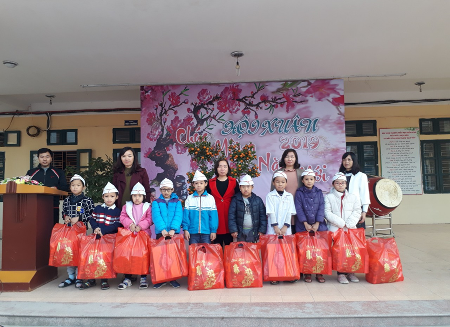 Nhà trường trao quà Tết cho học sinh có hoàn cảnh khó khăn.